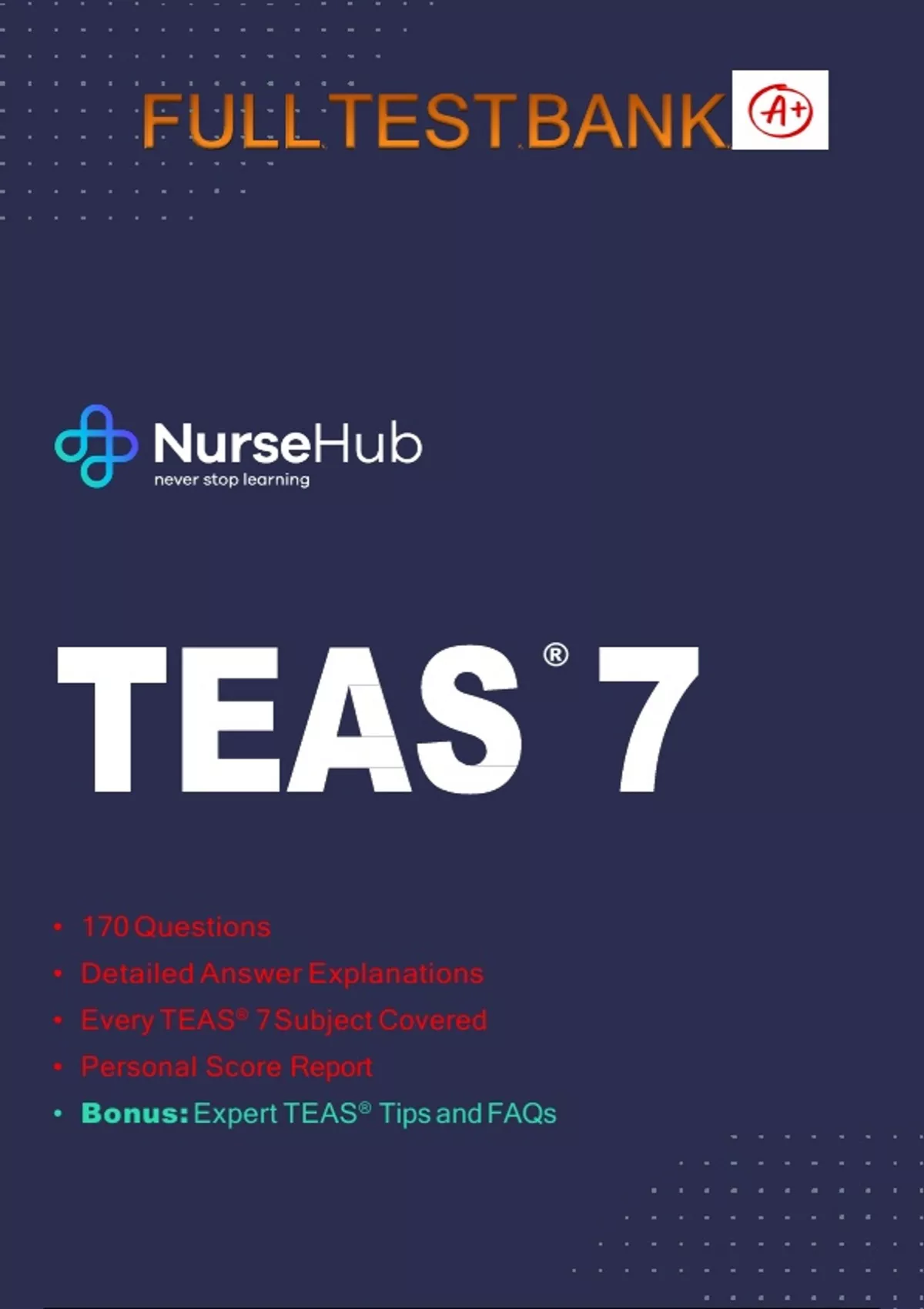 TEAS® TEAS 7 Test Bank 2024 – 170 Practice Questions & Detailed Explanations | NurseHub Edition | Reading, Math, Science, English7 Test Bank | 9781950159574: 170 Questions Detailed Answer Explanations, Every TEAS® 7 Subject Covered, Personal Score Report
