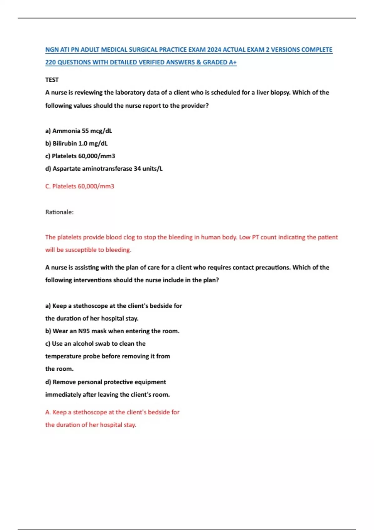 220 QUESTIONS WITH DETAILED VERIFIED ANSWERS & GRADED A+