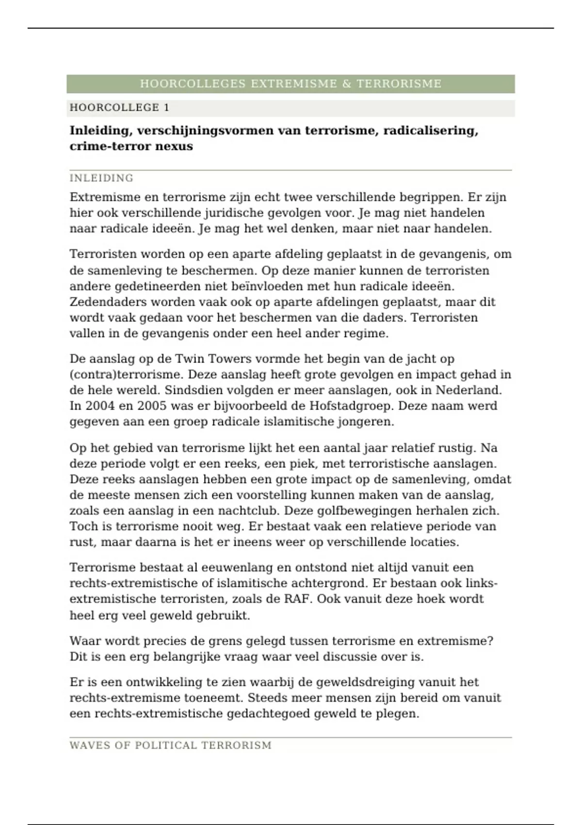 HOORCOLLEGES EXTREMISME & TERRORISME