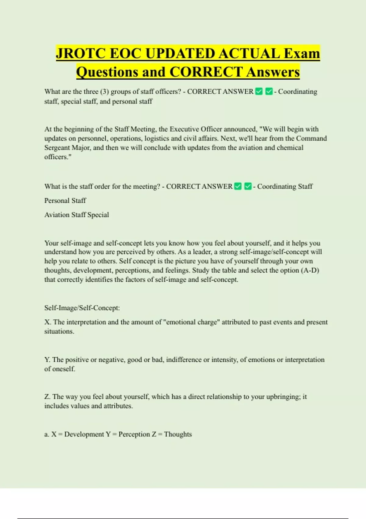 c. X = Percepti - CORRECT ANSWER - c. X = Perception Y = Feelings Z = Development