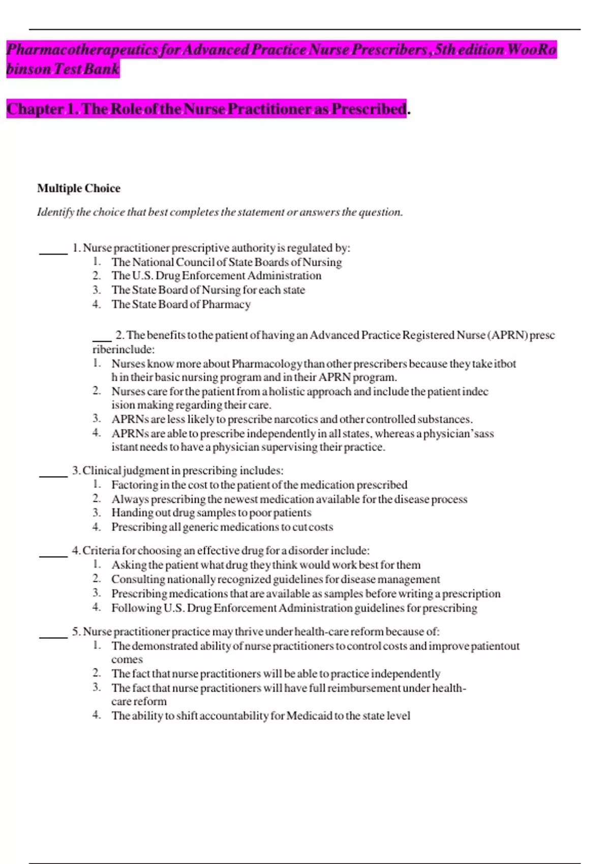 Test Bank For Pharmacotherapeutics for Advanced Practice Nurse Prescribers, 5th edition Woo Robinson