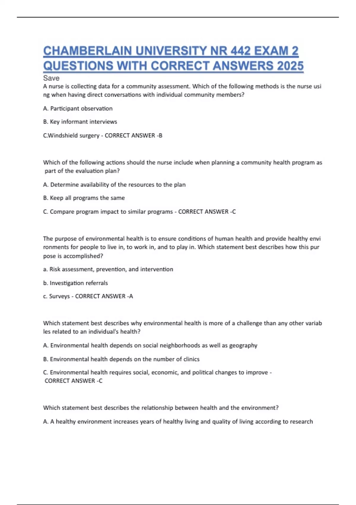 CHAMBERLAIN UNIVERSITY NR 442 EXAM 2