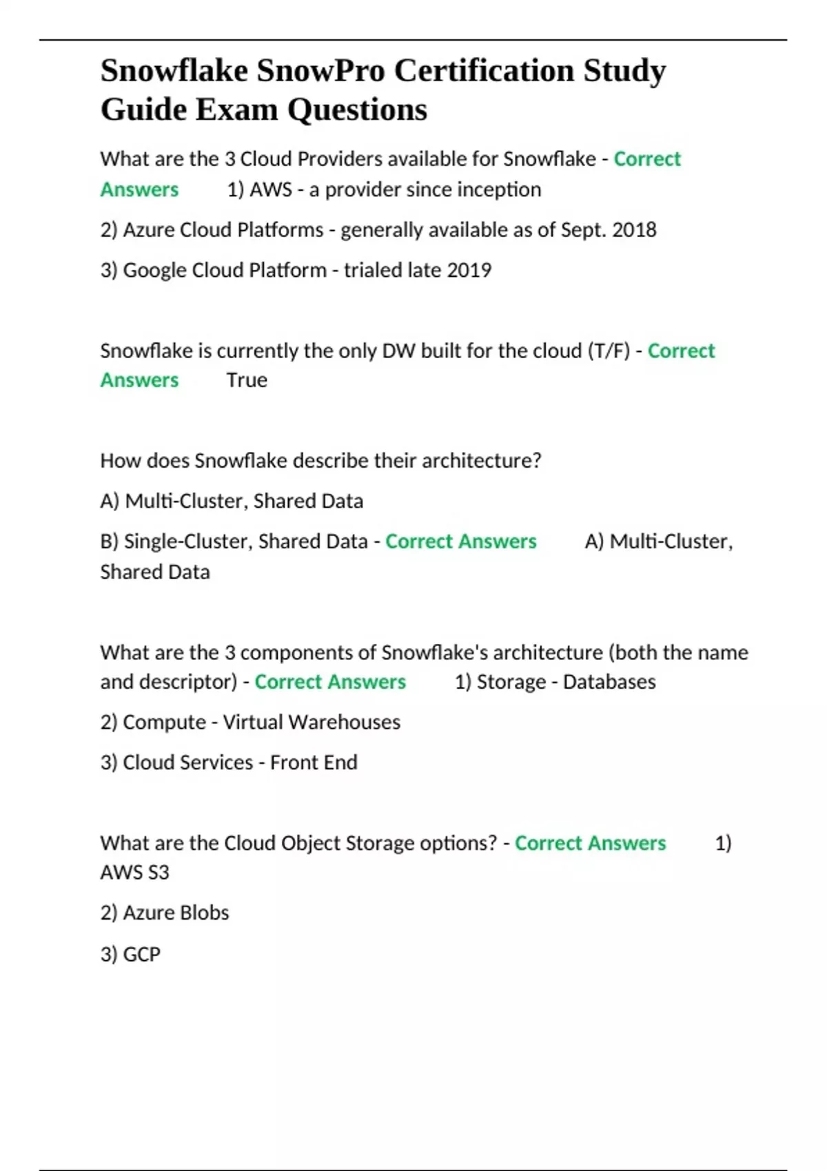 Snowflake SnowPro Certification Study Guide Exam Questions