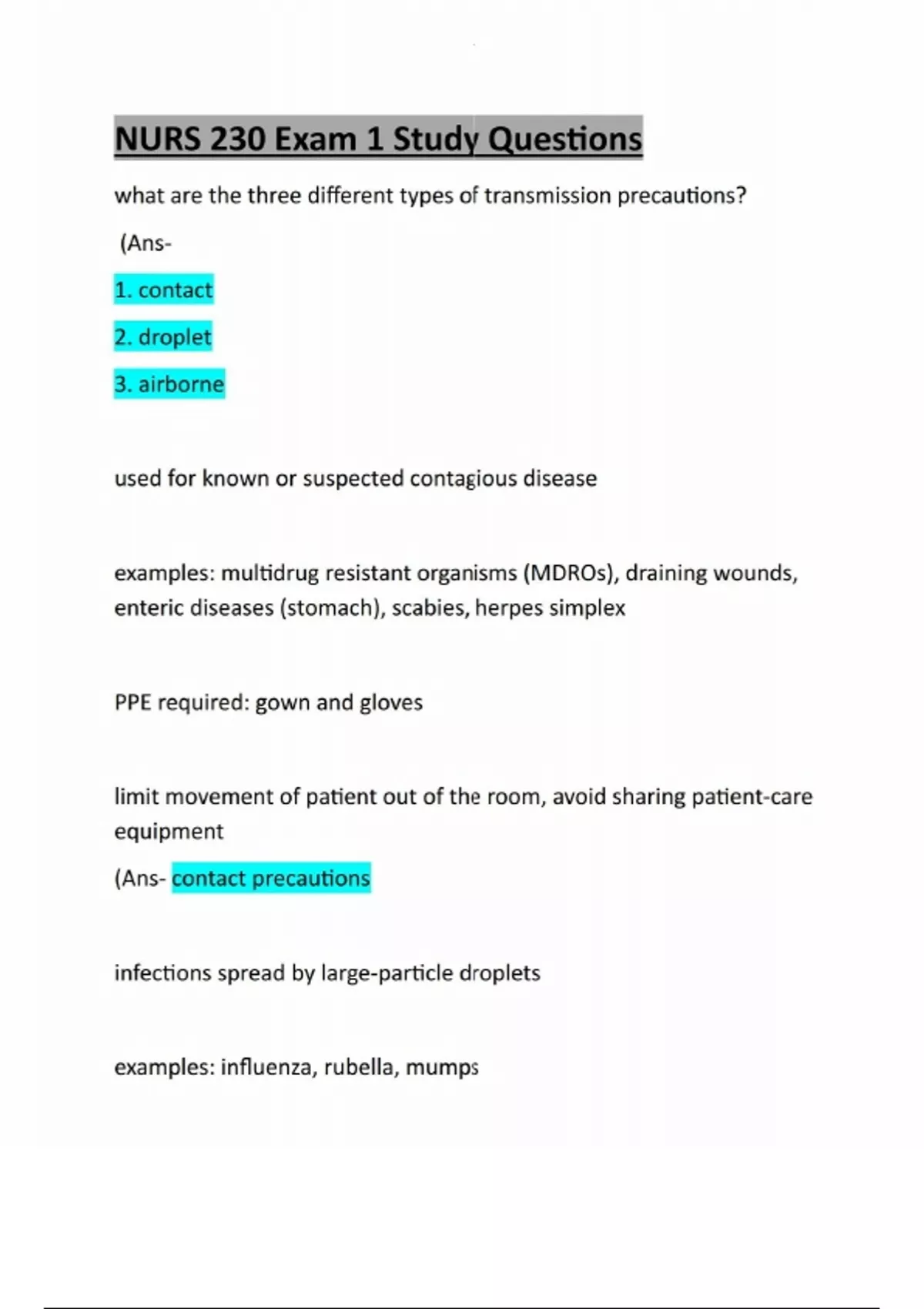 NURS 230 Exam 1 Study Questions & Answers: Updated Guide Solution