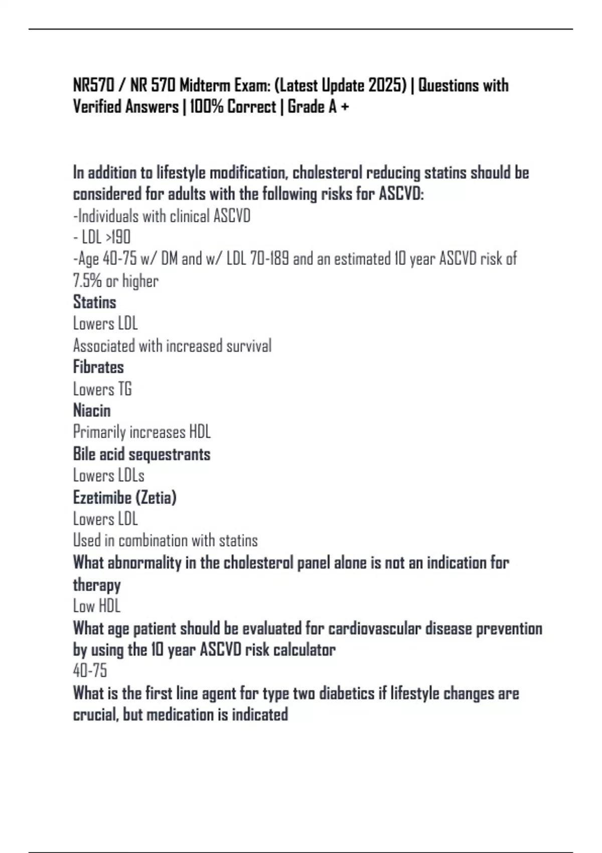 NR570 / NR 570 Midterm Exam: (Latest Update 2025) | Questions with