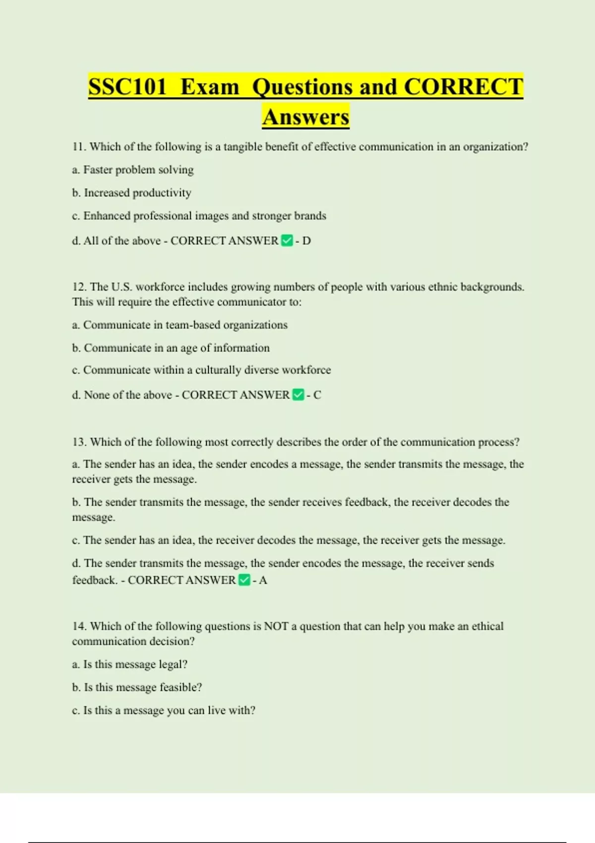 ,d. All are questions that can help you make an ethical decision. - CORRECT ANSWER -D