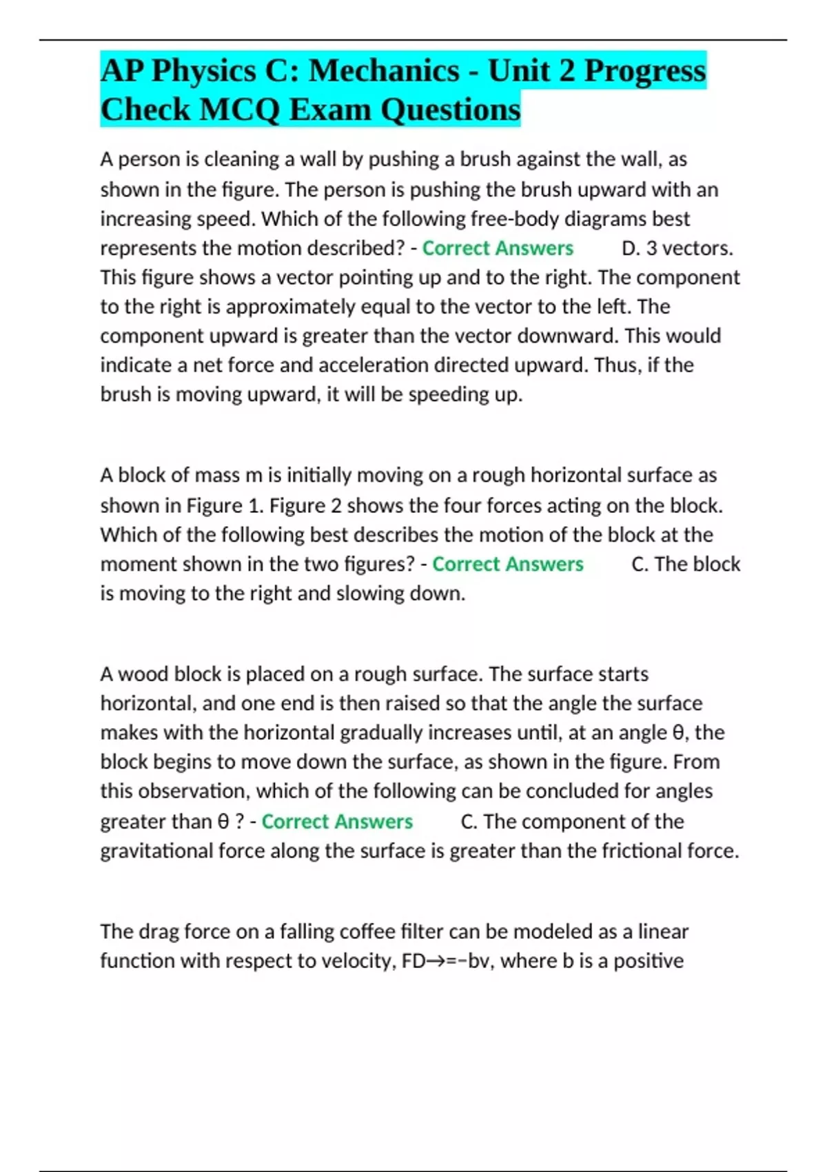 , AP Physics C: Mechanics - Unit 2 Progress