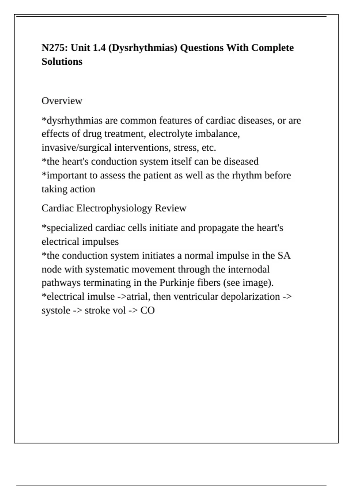 N275: Unit 1.4 (Dysrhythmias) Questions With Complete
