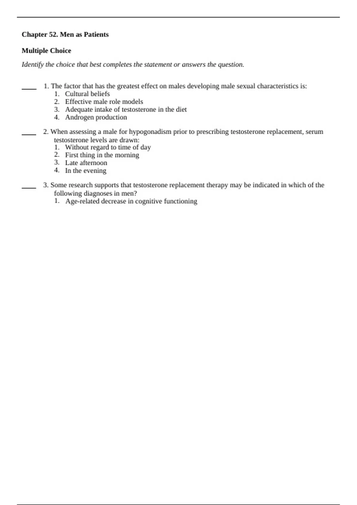 2. When assessing a male for hypogonadism prior to prescribing testosterone replacement, serum