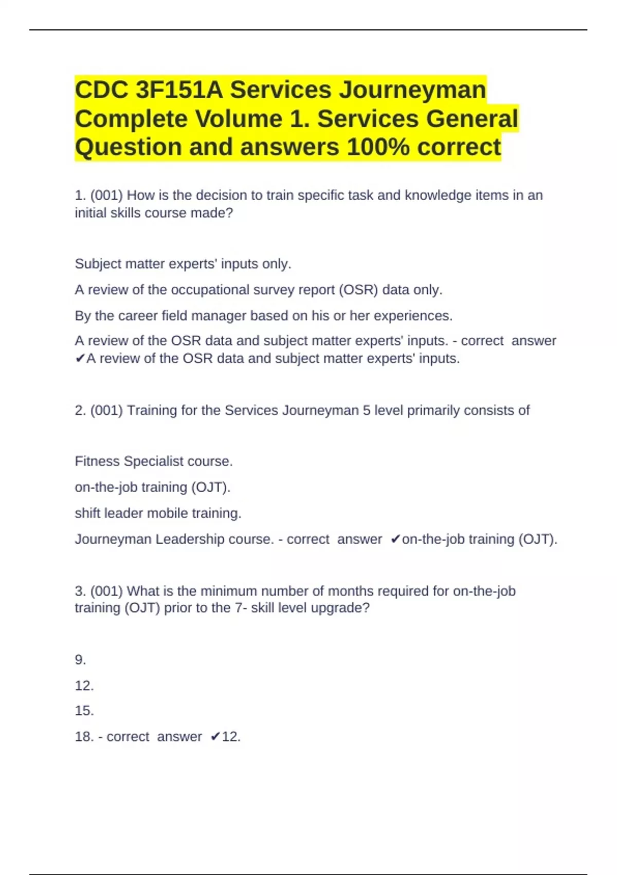 3. (001) What is the minimum number of months required for on-the-job