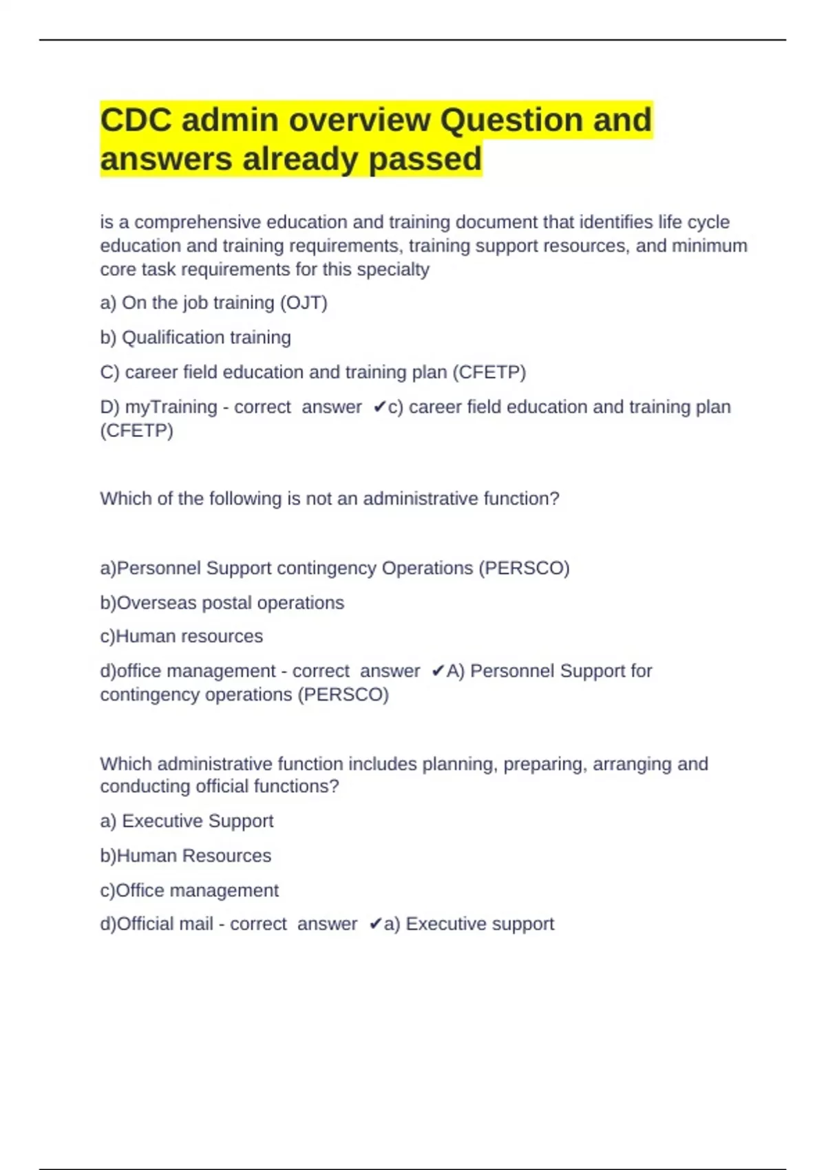 d)Official mail - correct answer ✔a) Executive support