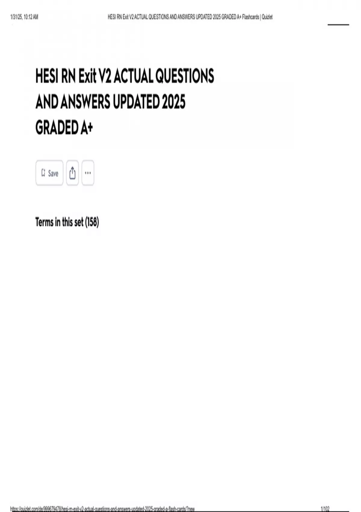 , 1/31/25, 10:12 AM HESI RN Exit V2 ACTUAL QUESTIONS AND ANSWERS UPDATED 2025 GRADED A+ Flashcards | Quizlet