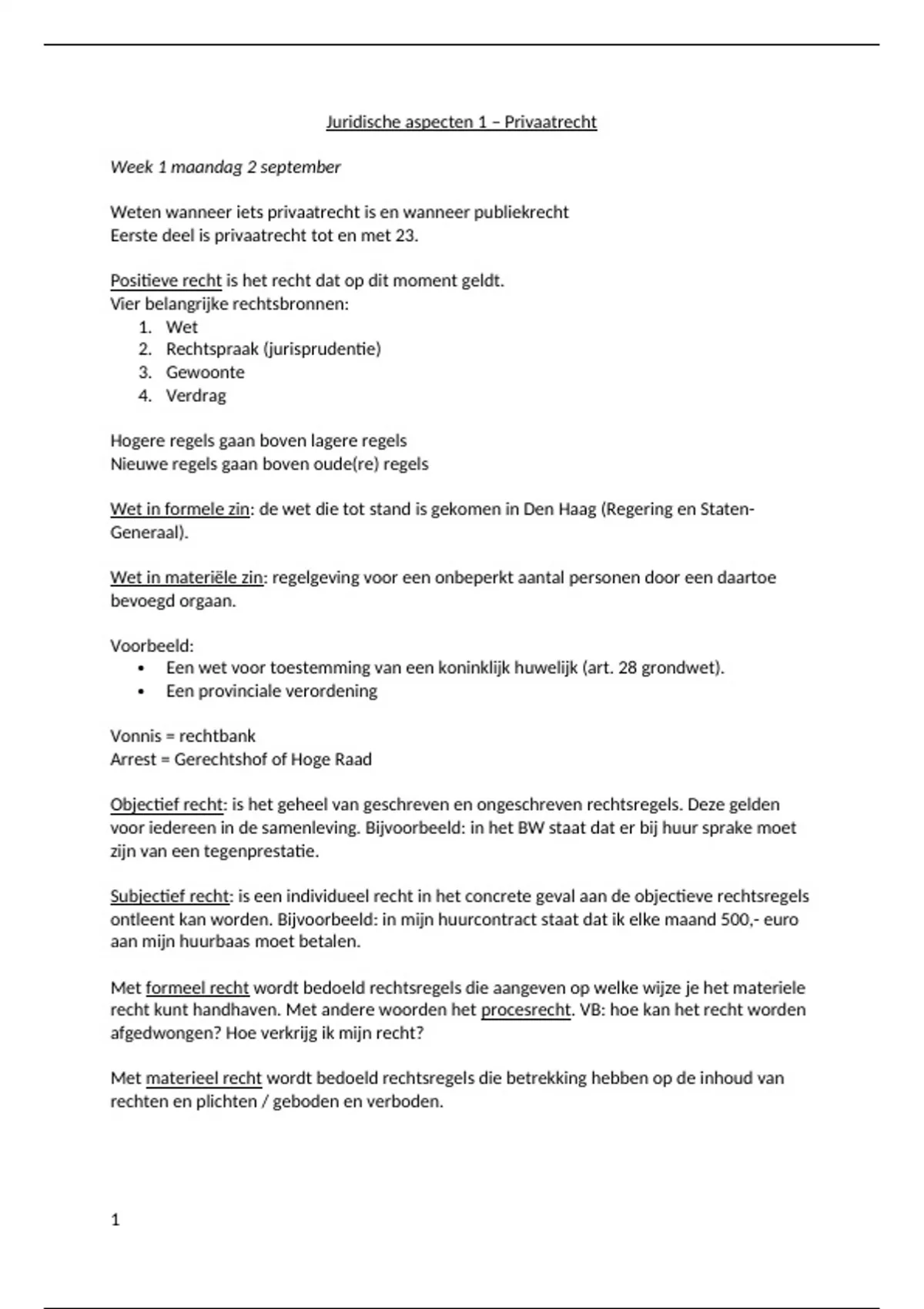 Samenvatting en aantekeningen van het vak Juridische Aspecten 1 van de Minor Makelaardij op Saxion in Enschede