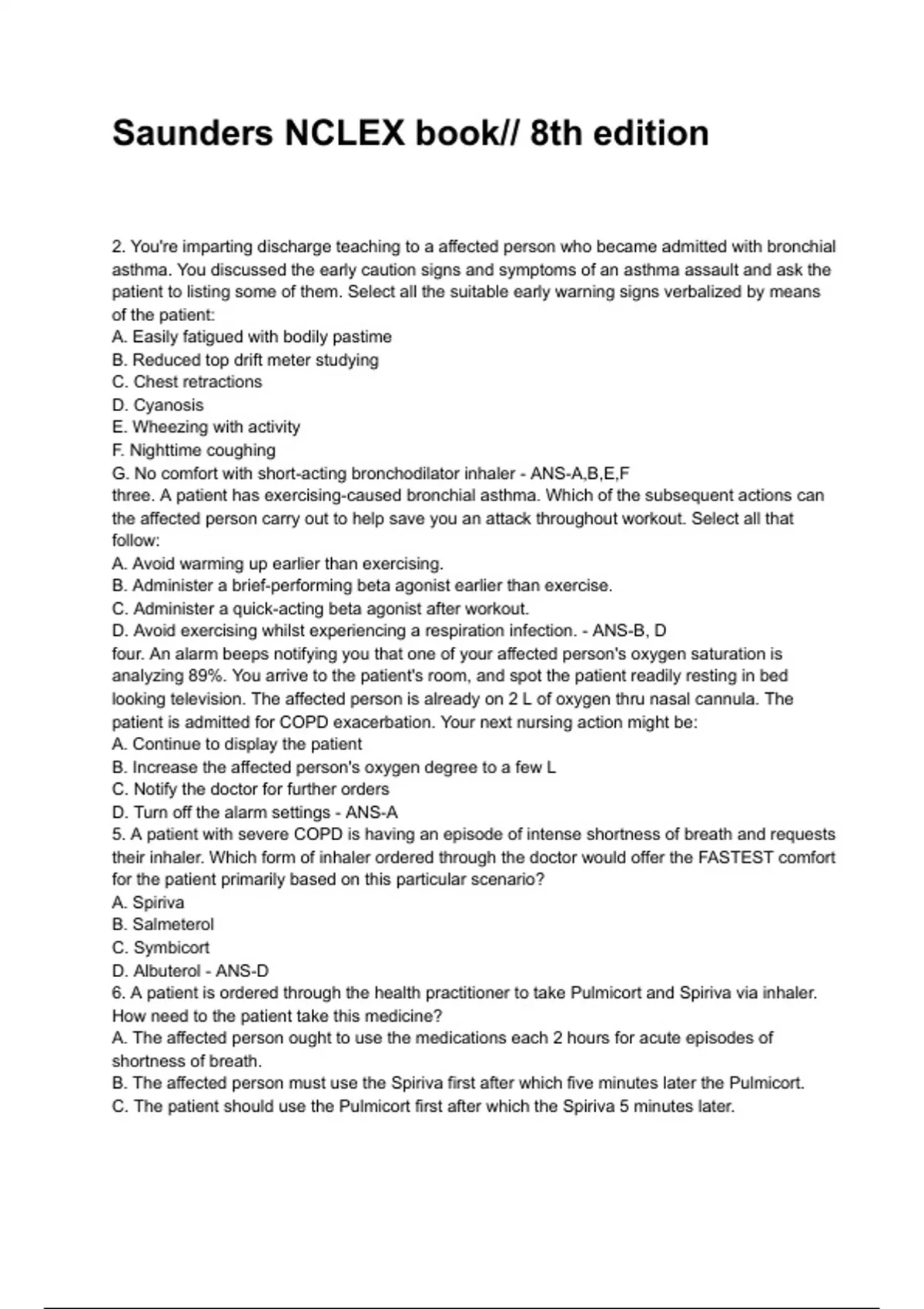 G. No comfort with short-acting bronchodilator inhaler - ANS-A,B,E,F