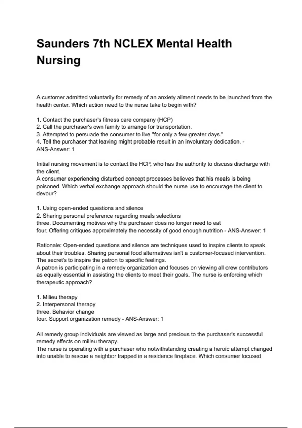 four. Offering critiques approximately the necessity of good enough nutrition - ANS-Answer: 1