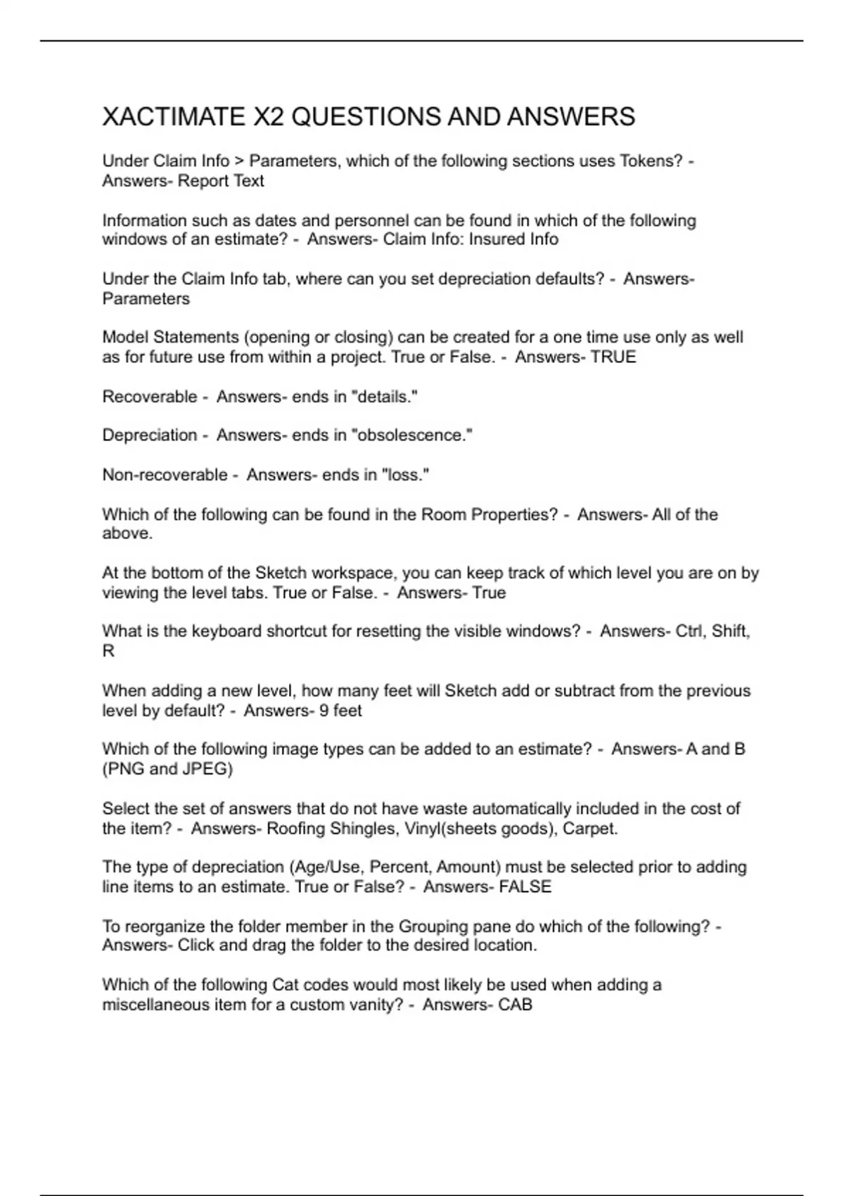 XACTIMATE X2 QUESTIONS AND ANSWERS