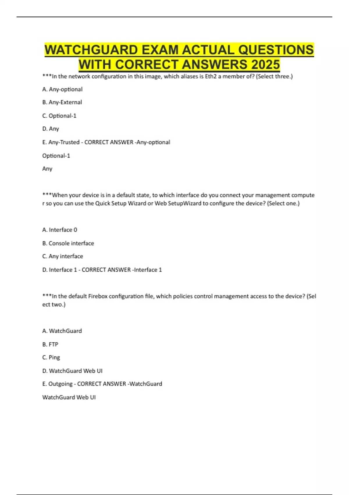WATCHGUARD EXAM ACTUAL QUESTIONS