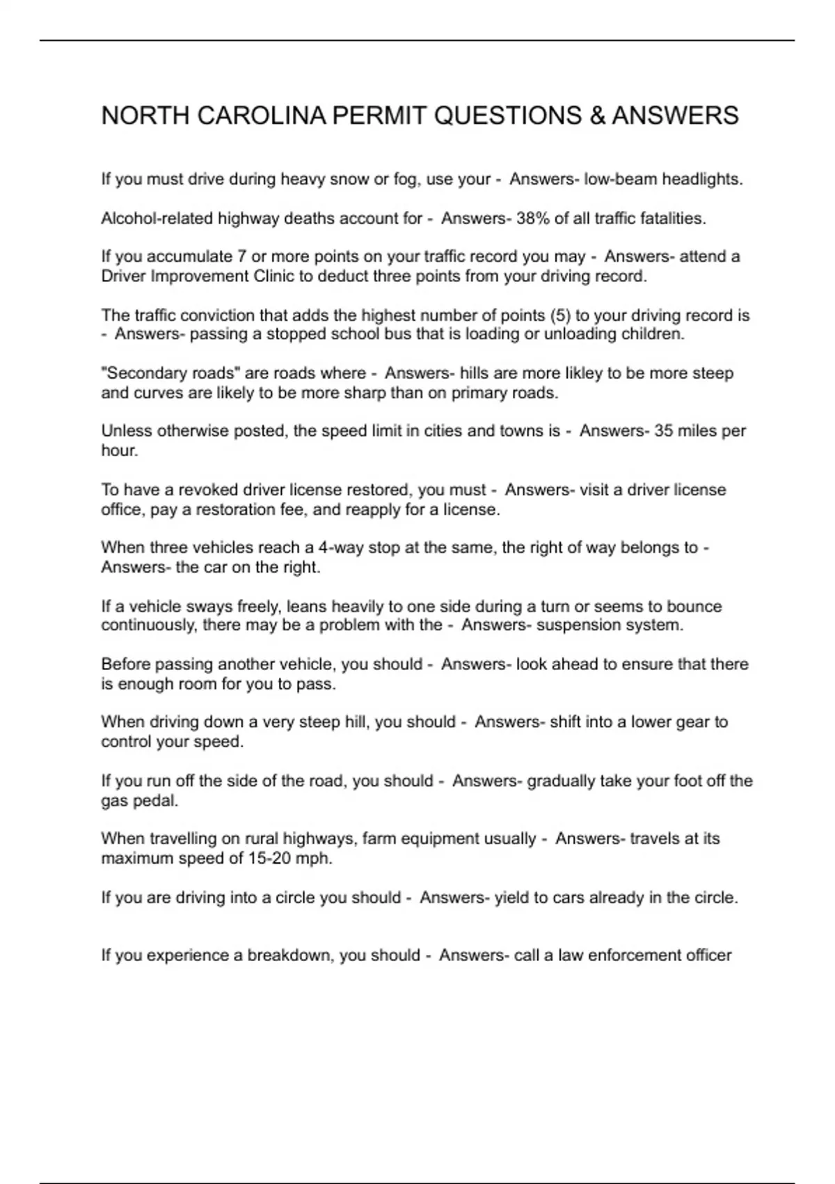 NORTH CAROLINA PERMIT QUESTIONS & ANSWERS