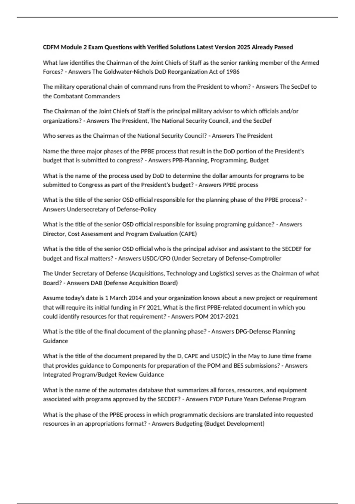 After all resource-related decisions have been made by the DEPSECDEF of SECDEF to determine the
