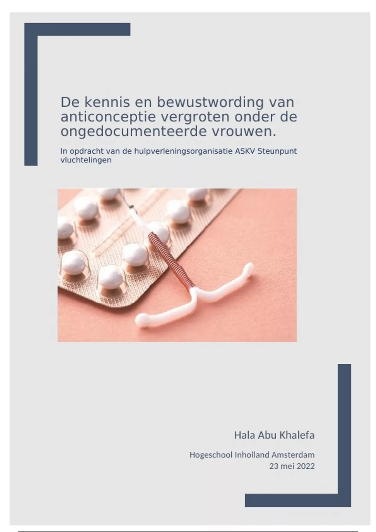 Dit adviesrapport heb ik geschreven in het kader van mijn afstuderen voor de opleiding ‘Social Work’. Voor dit rapport heb ik een kwalitatief onderzoek uitgevoerd binnen de hulpverleningsorganisatie ASKV Steunpunt Vluchtelingen.