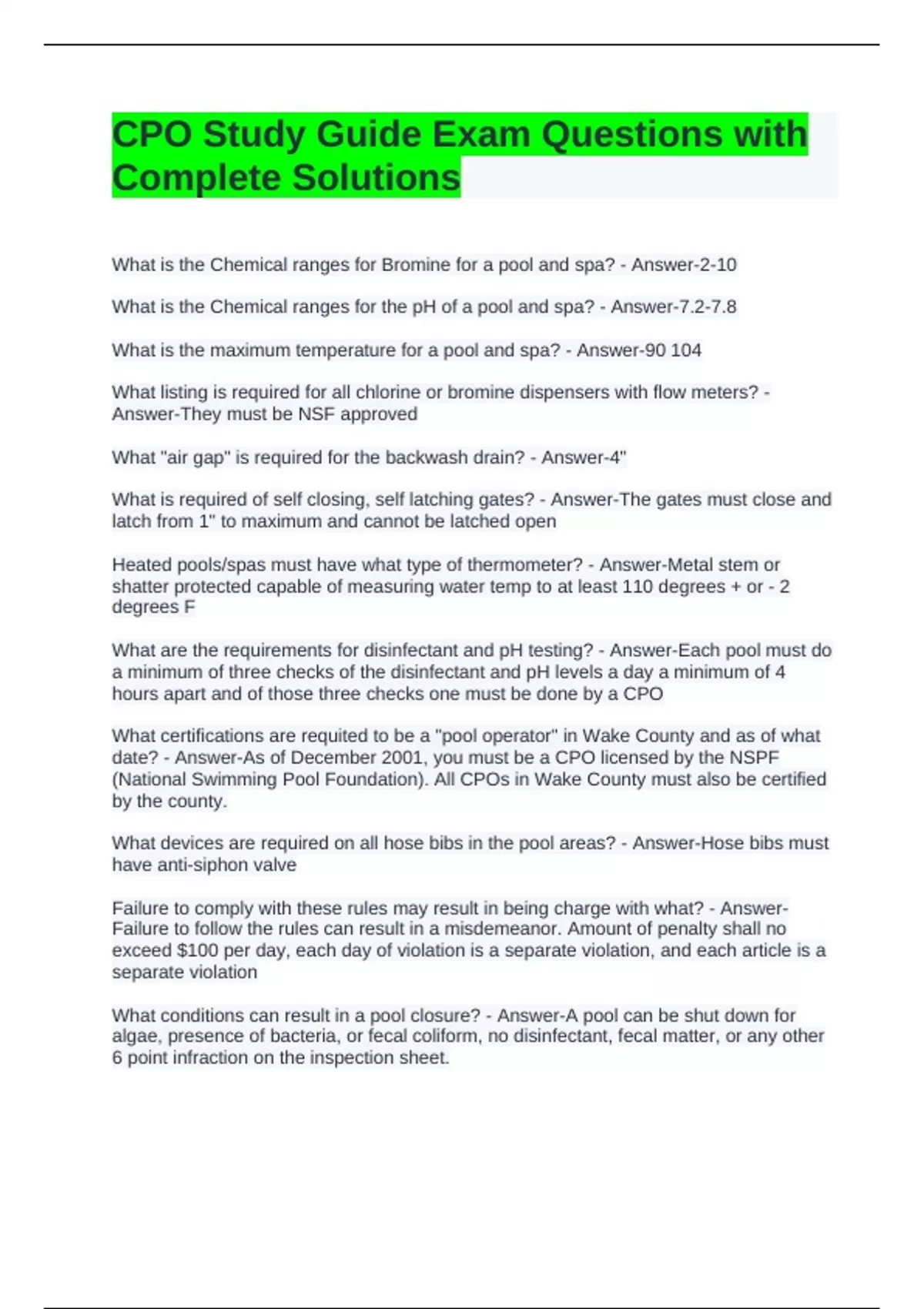 CPO Study Guide Exam Questions with