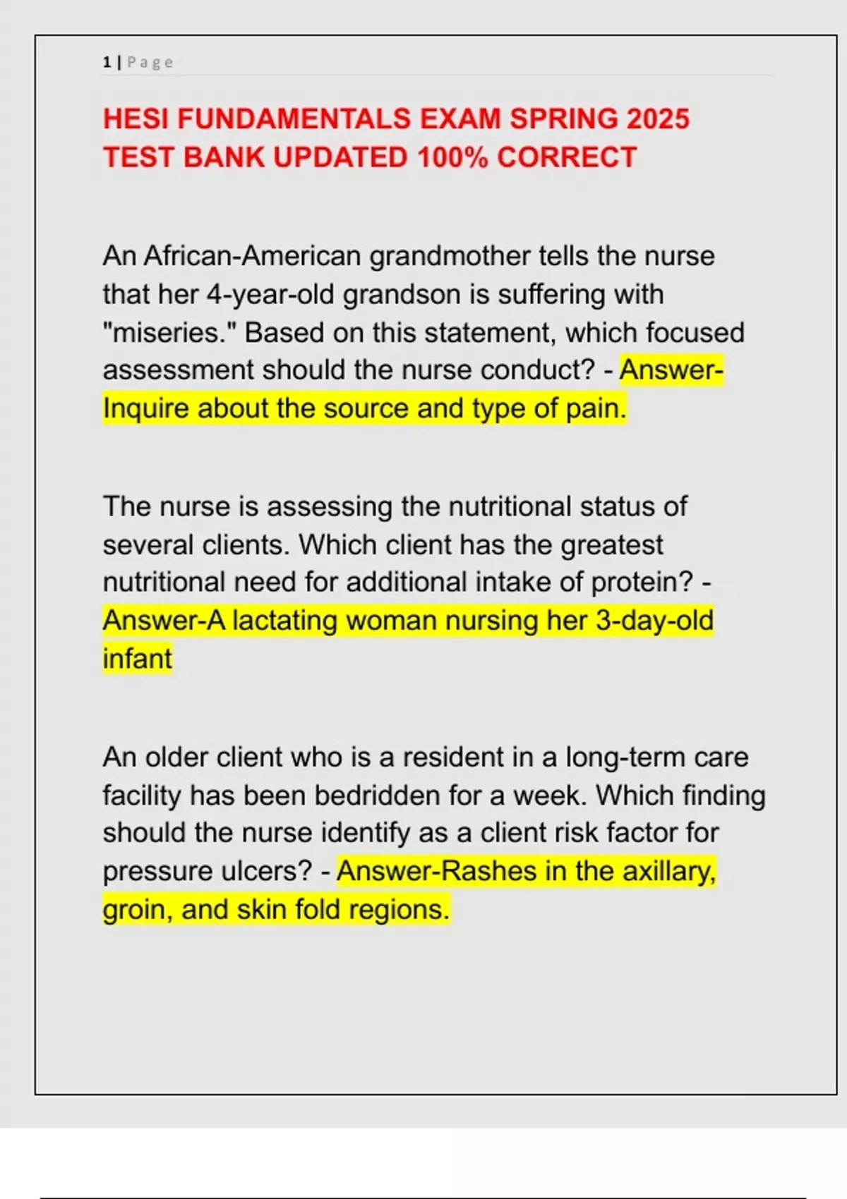 HESI FUNDAMENTALS EXAM SPRING 2025