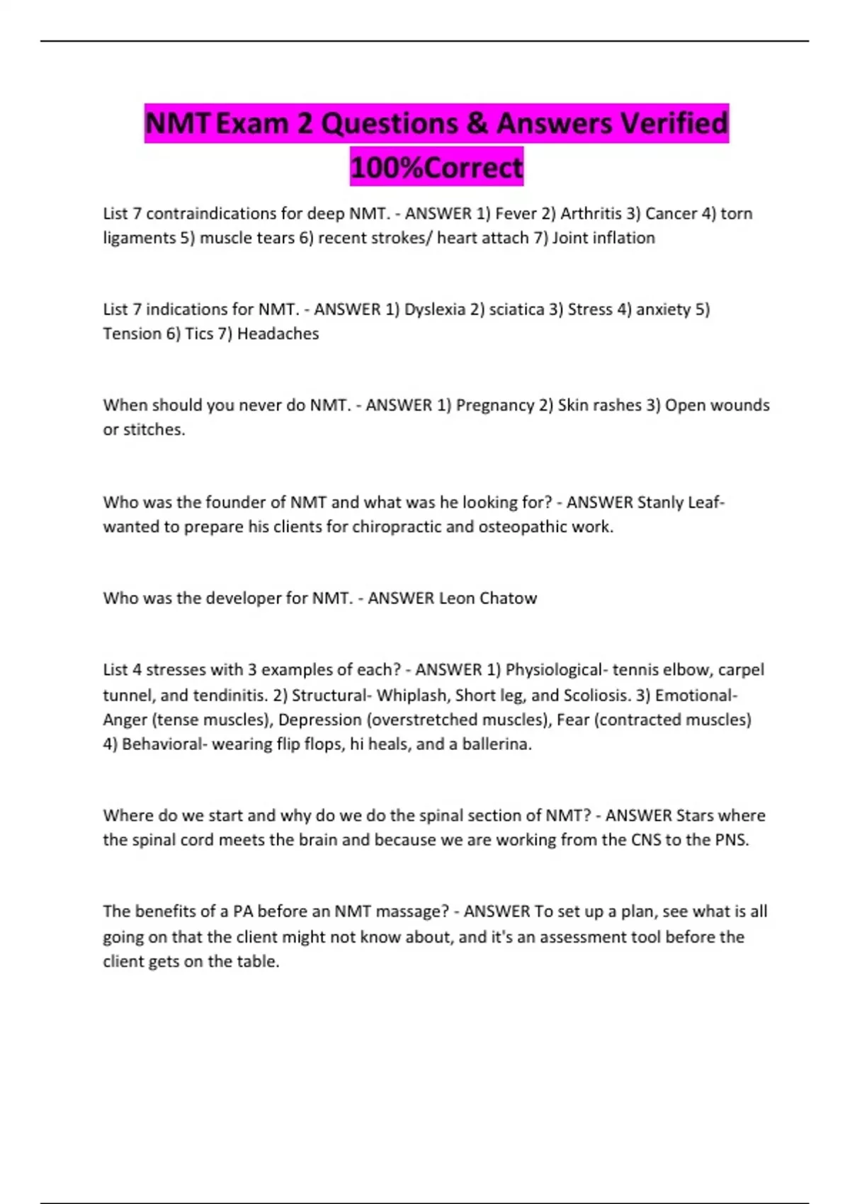 NMT Exam 2 Questions & Answers Verified 100%Correct