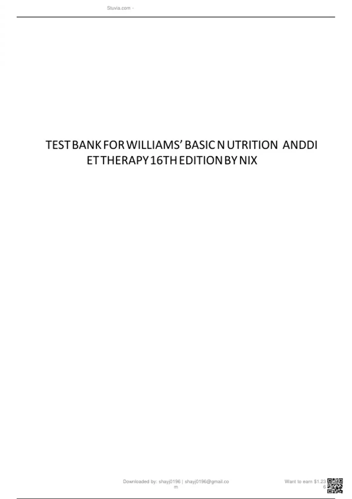 TEST BANK FOR WILLIAMS’ BASIC N UTRITION ANDDI