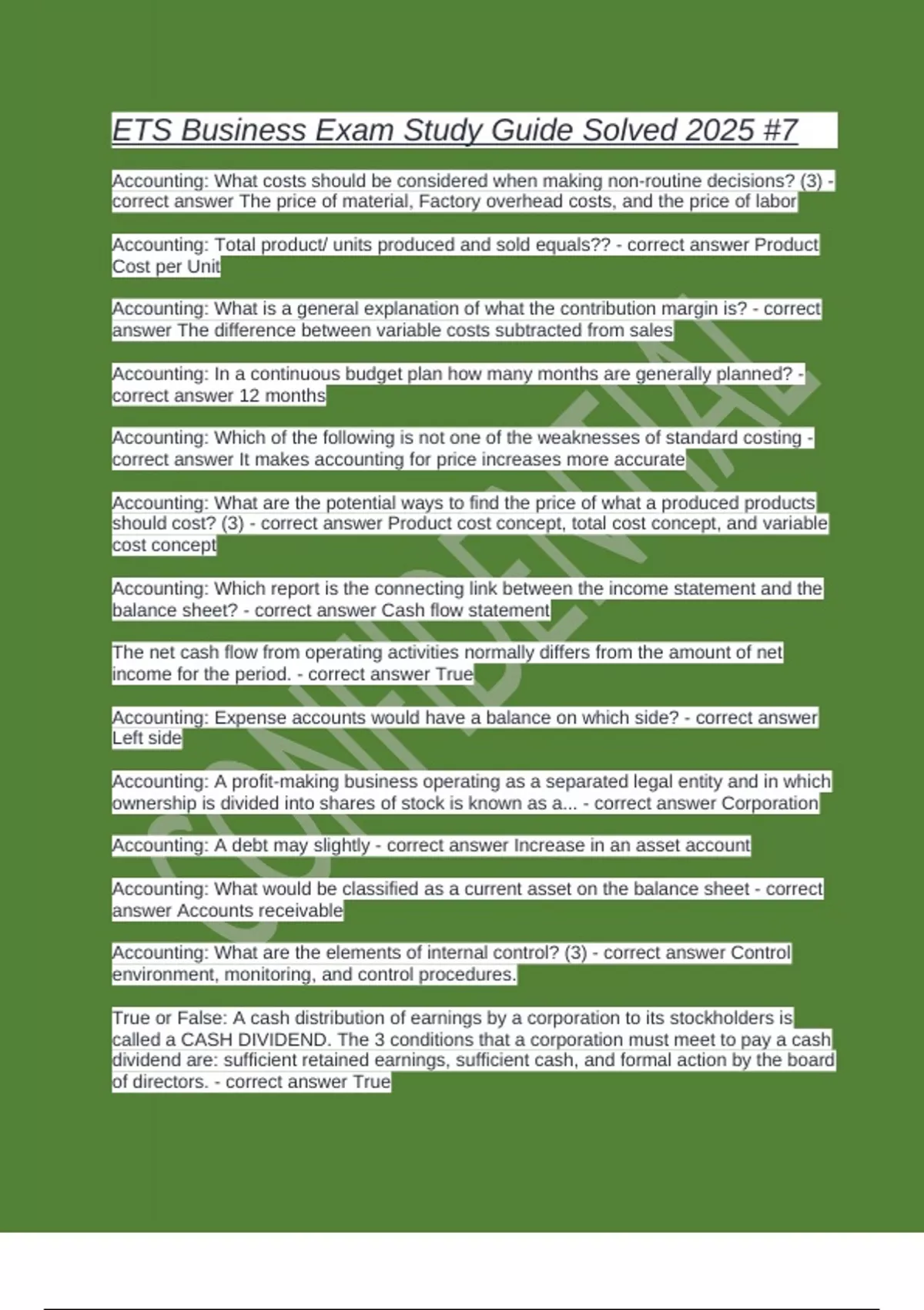 following?? - correct answer Meet its financial obligations, generate cash from