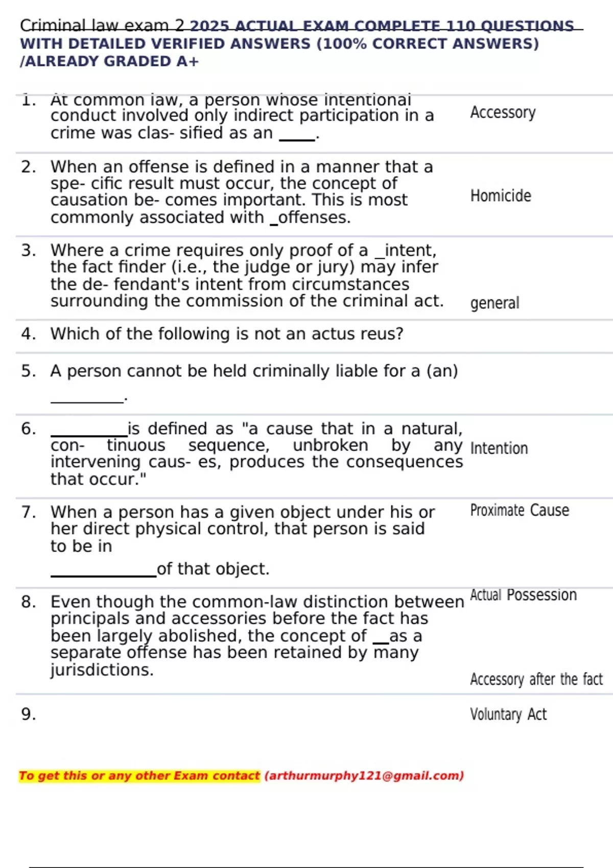 ,Criminal law exam 2 2025 ACTUAL EXAM COMPLETE 110 QUESTIONS