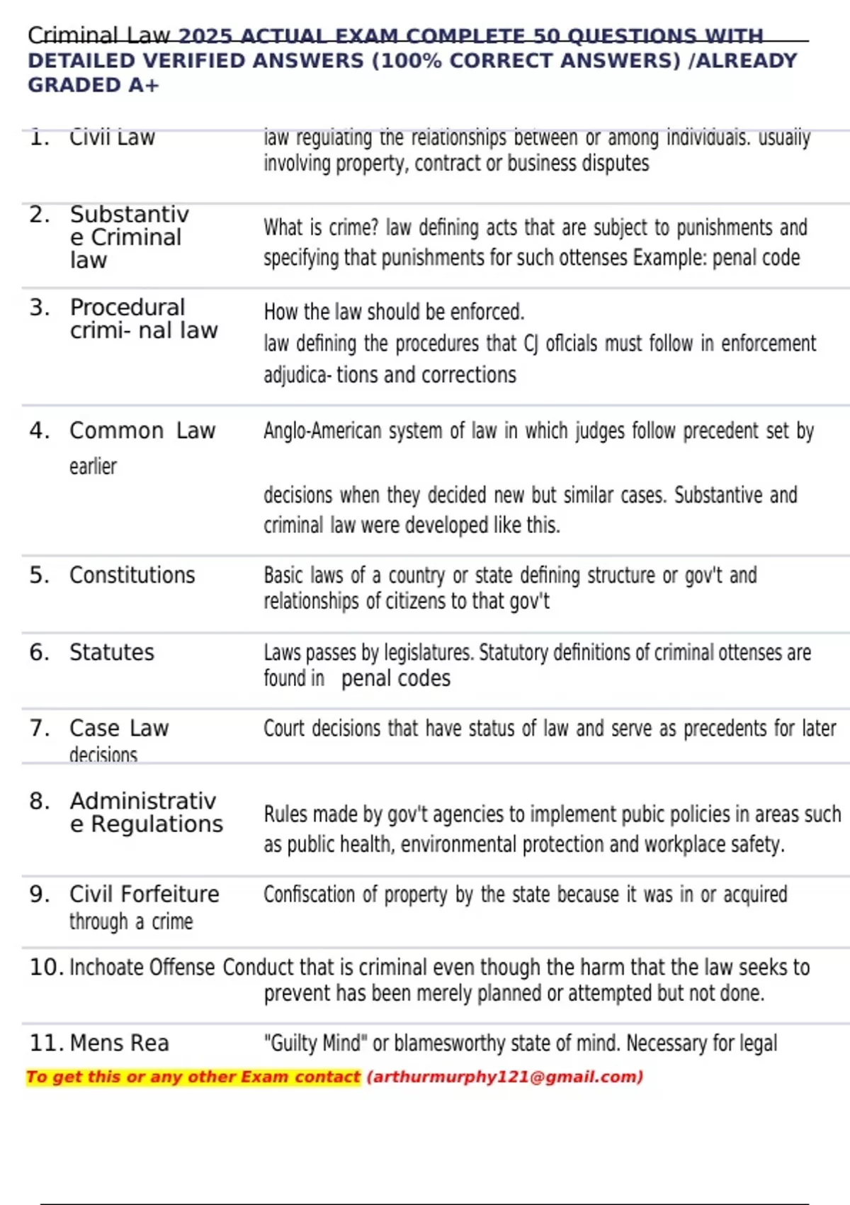 , Criminal Law 2025 ACTUAL EXAM COMPLETE 50 QUESTIONS WITH