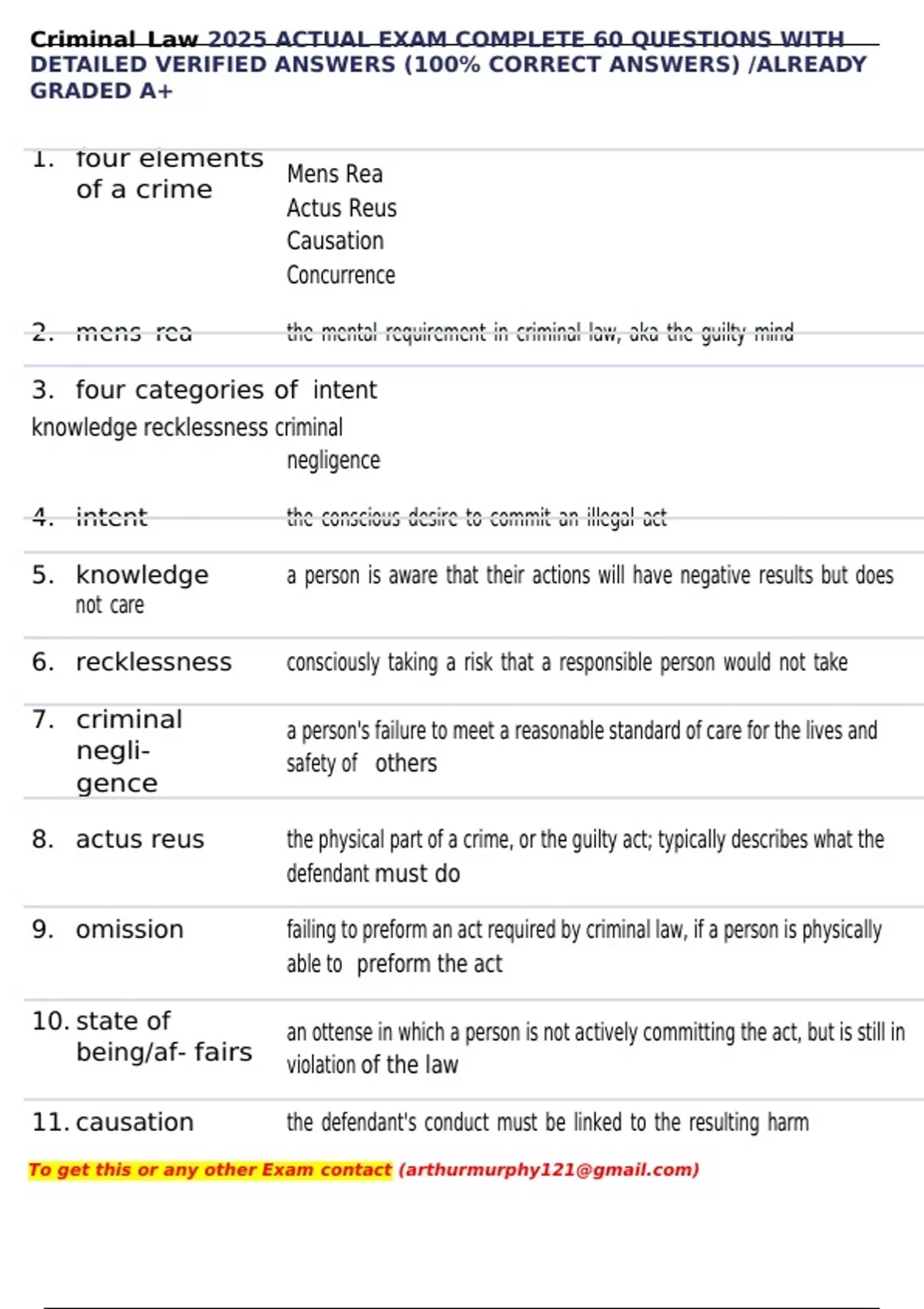 , Criminal Law 2025 ACTUAL EXAM COMPLETE 60 QUESTIONS WITH