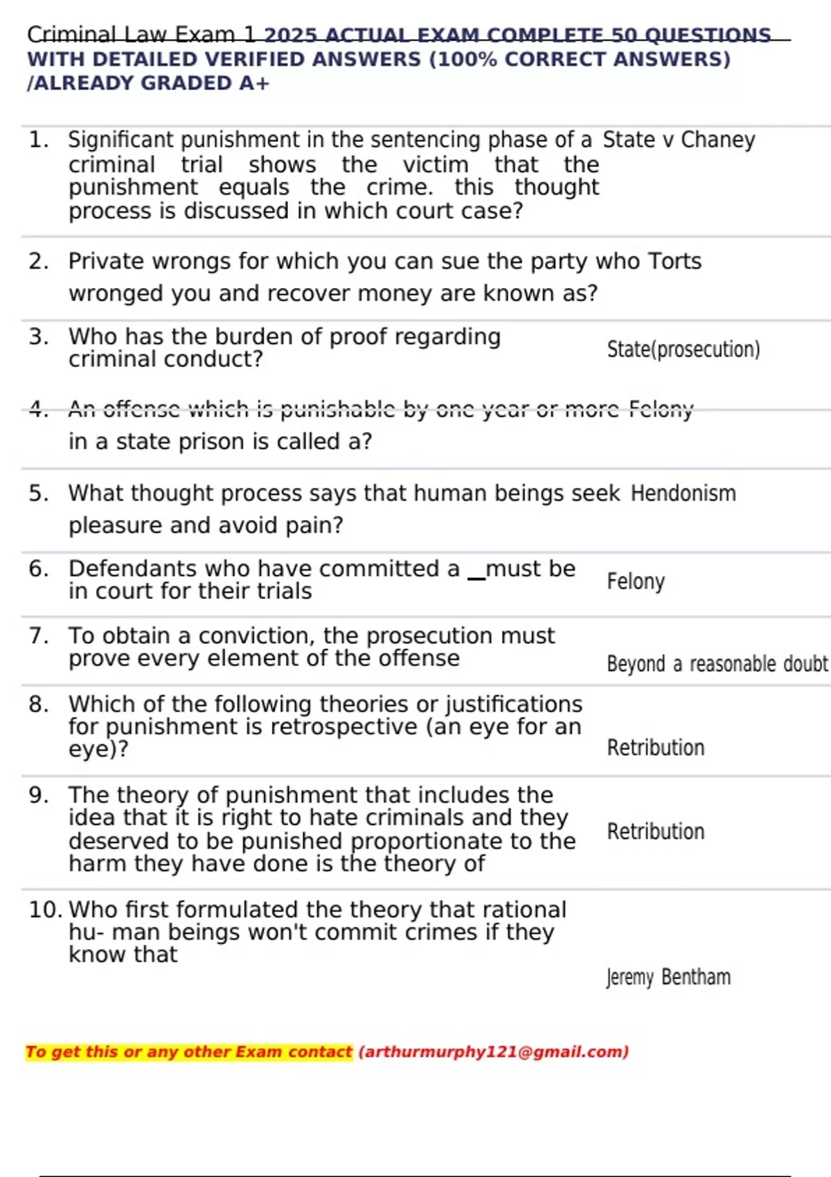 Criminal Law Exam 1 2025 ACTUAL EXAM COMPLETE 50 QUESTIONS