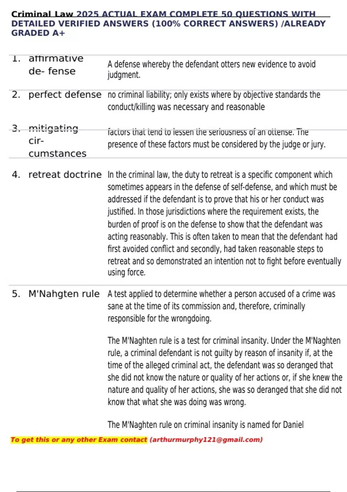 , Criminal Law 2025 ACTUAL EXAM COMPLETE 50 QUESTIONS WITH