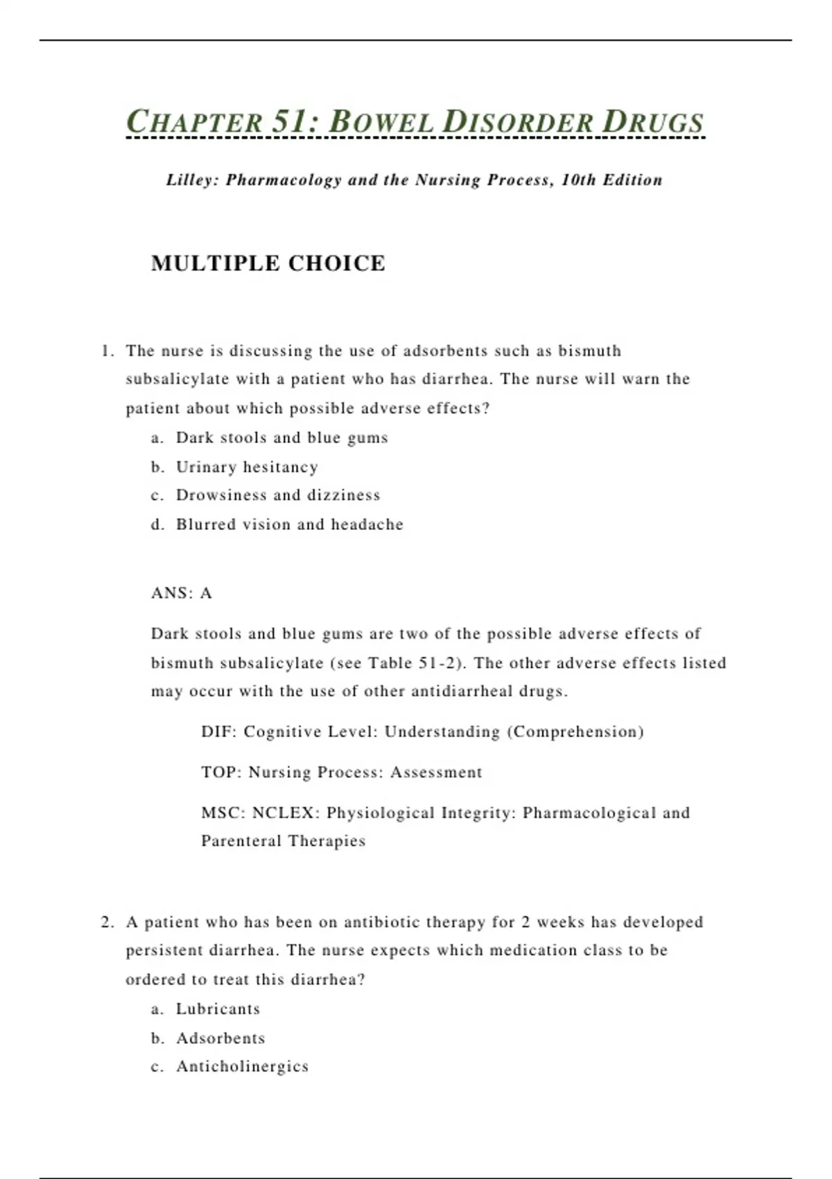 1. The nurse is discussing the use of adsorbents such as bismuth