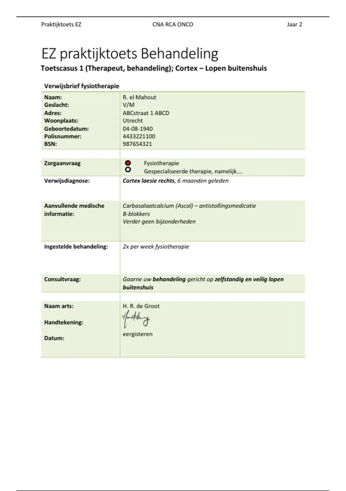 Toetscasus 1 (Therapeut, behandeling); Cortex – Lopen buitenshuis