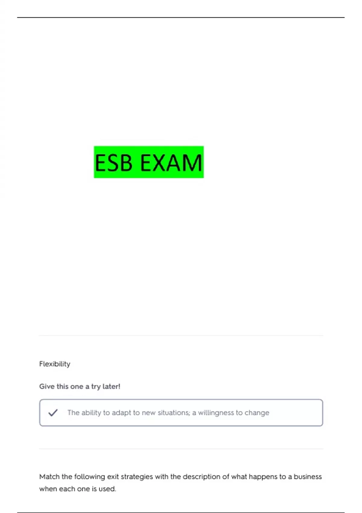 Match the following exit strategies with the description of what happens to a business