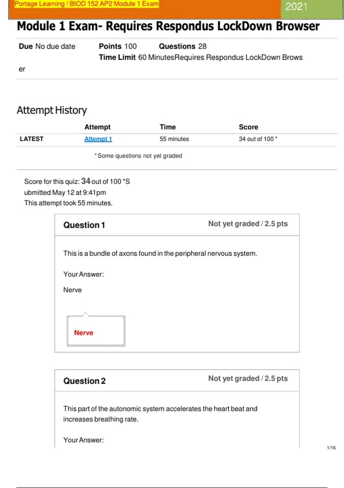, PortagevLearningv/vBIODv152vAP2vModulev1vExam