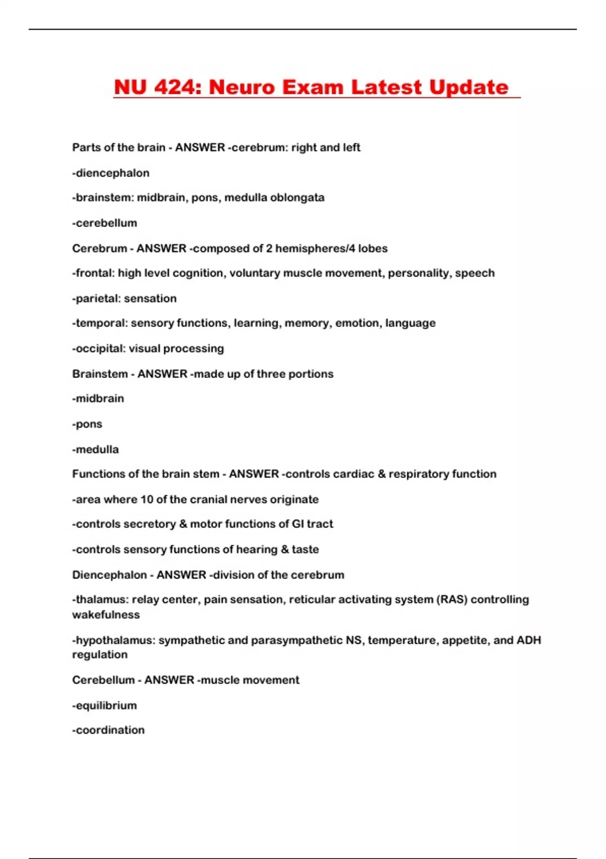 NU 424: Neuro Exam Latest Update
