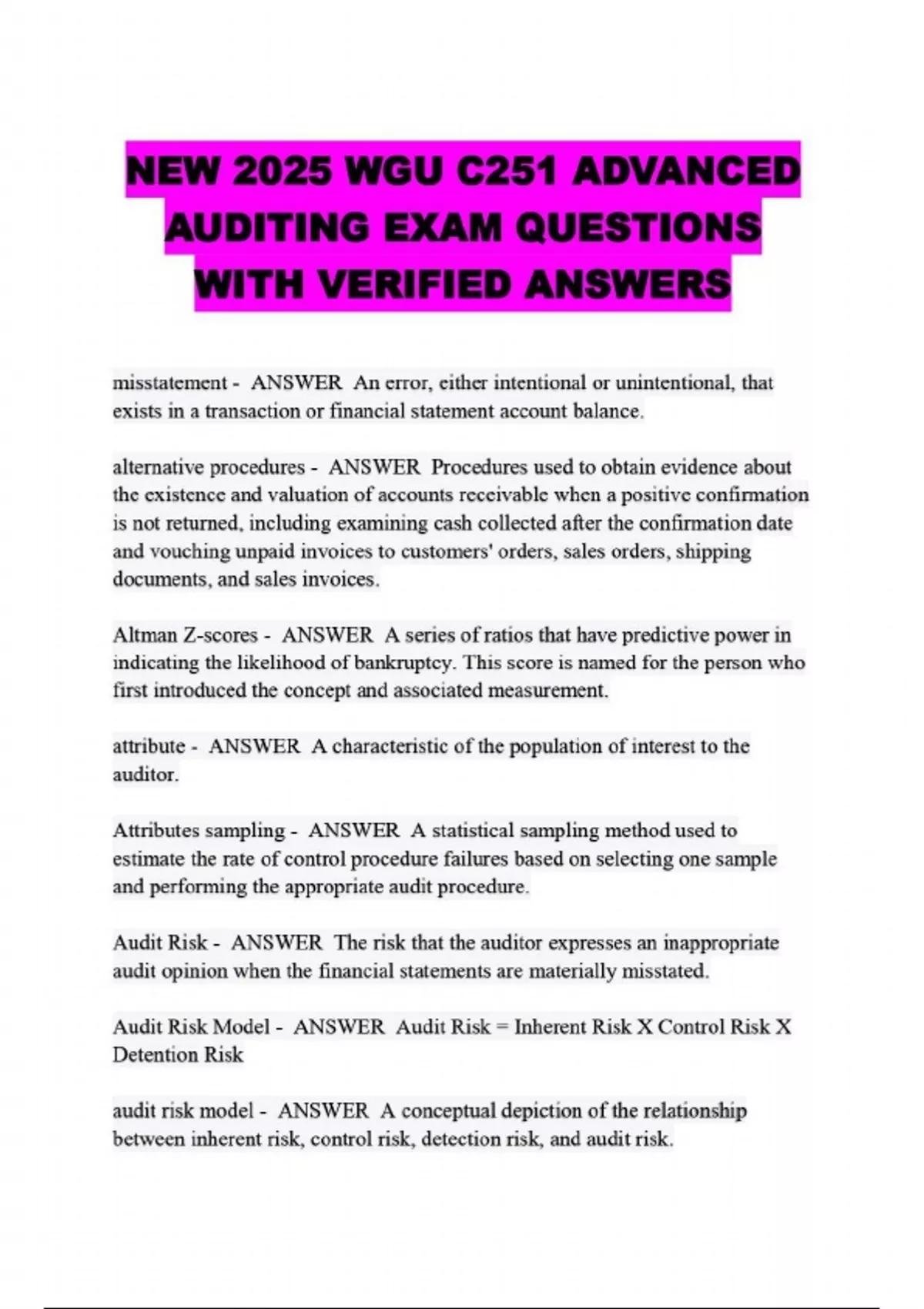 NEW 2025 WGU C251 ADVANCED AUDITING EXAM QUESTIONS WITH VERIFIED ANSWERS....