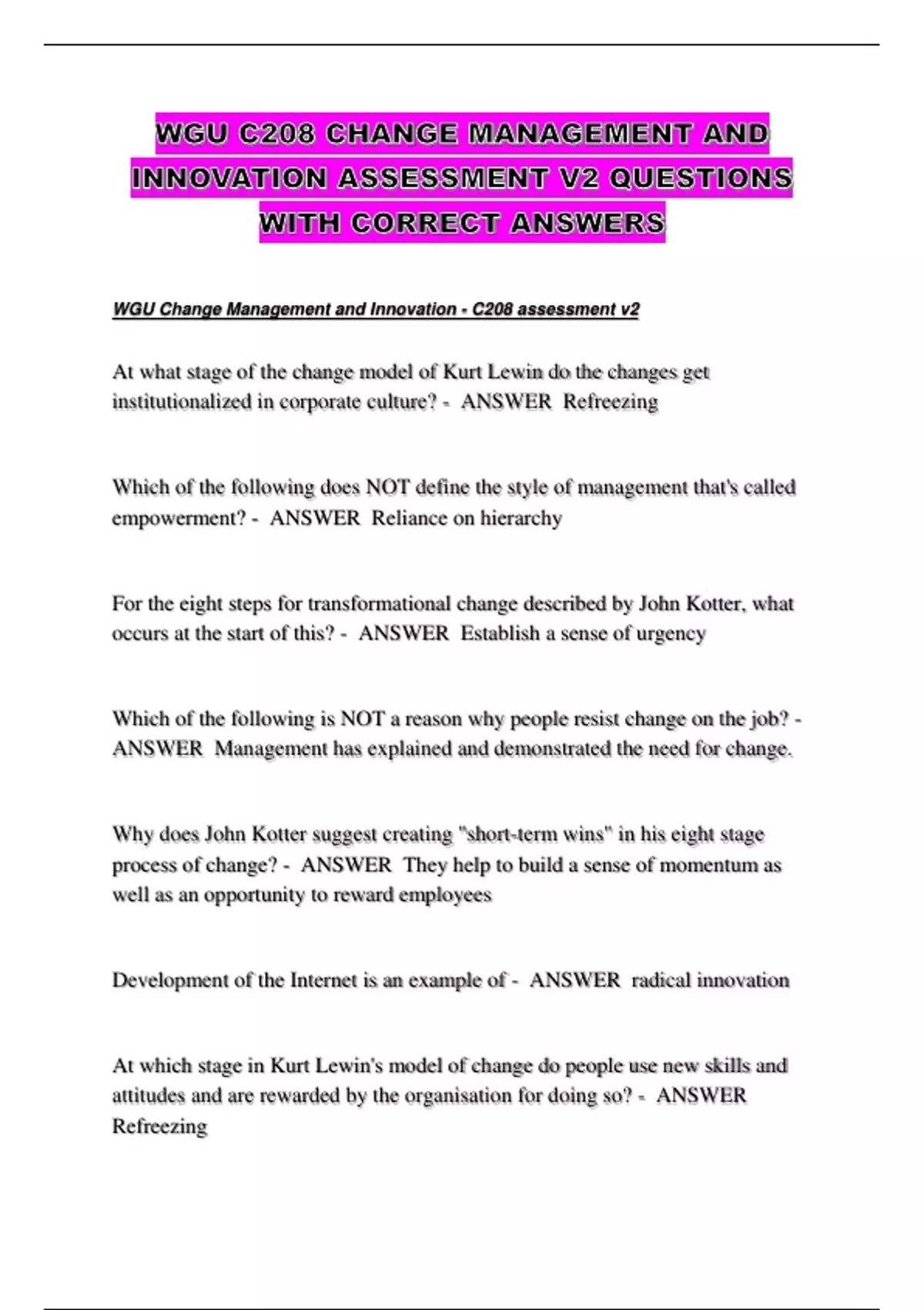 WGU Change Management and Innovation - C208 assessment v2