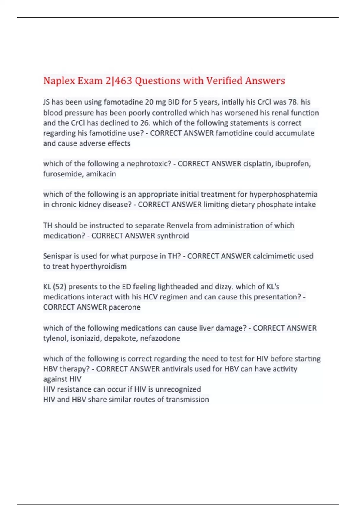 regarding his famotidine use? - CORRECT ANSWER famotidine could accumulate
