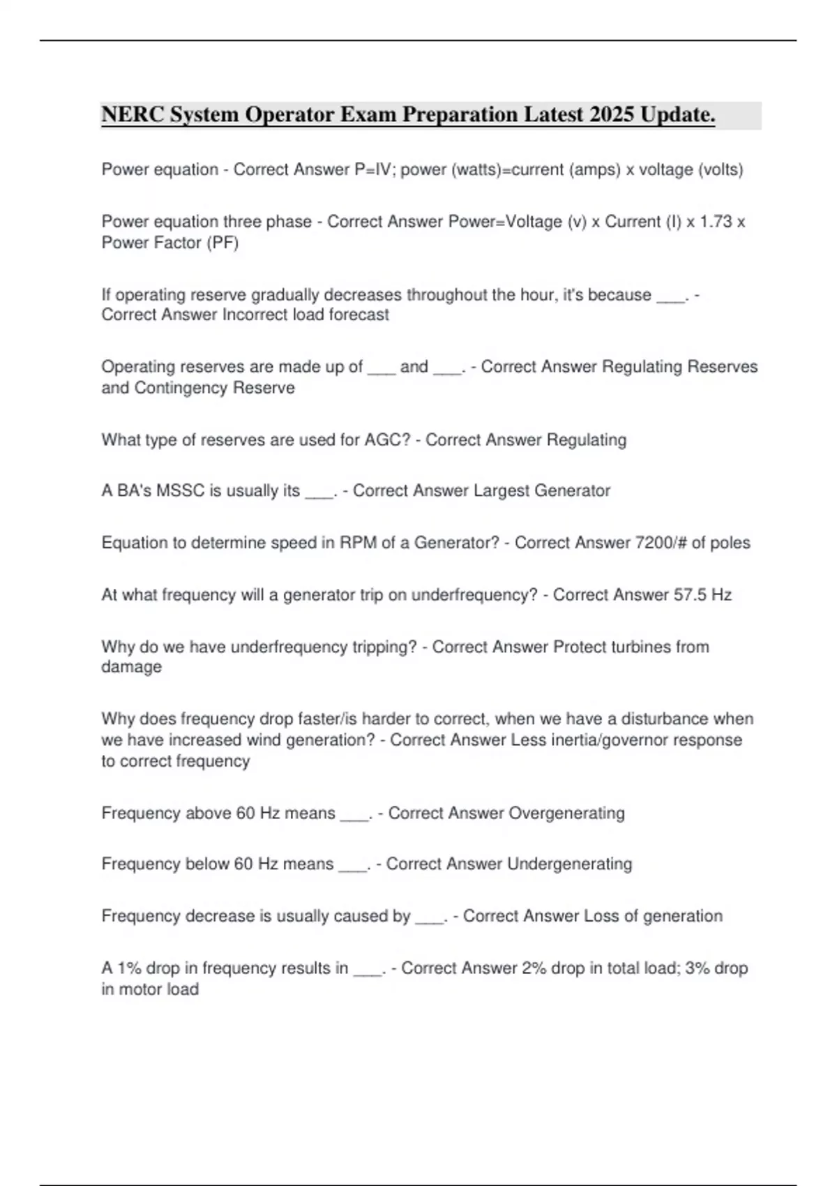 we have increased wind generation? - Correct Answer Less inertia/governor response