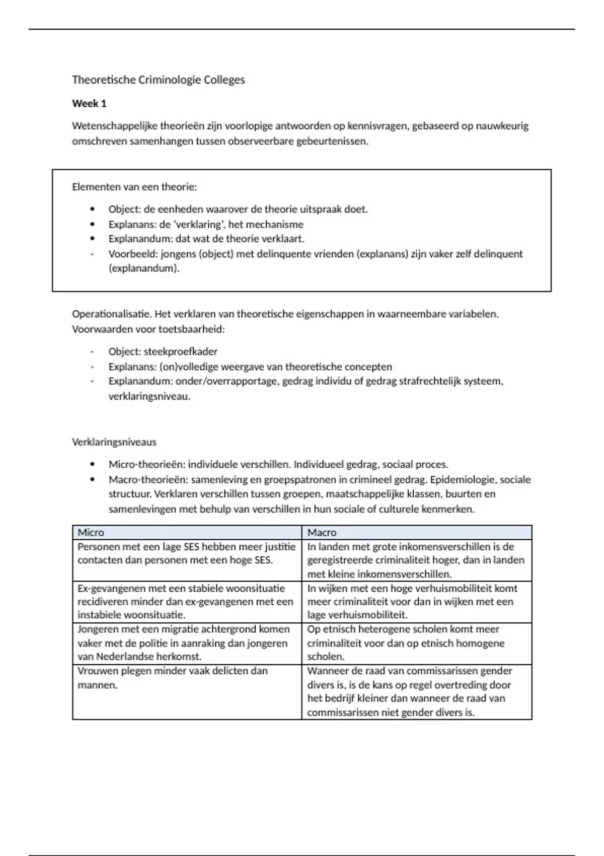 Samenvatting van alle hoorcolleges en werkgroepen van Theoretische Criminologie