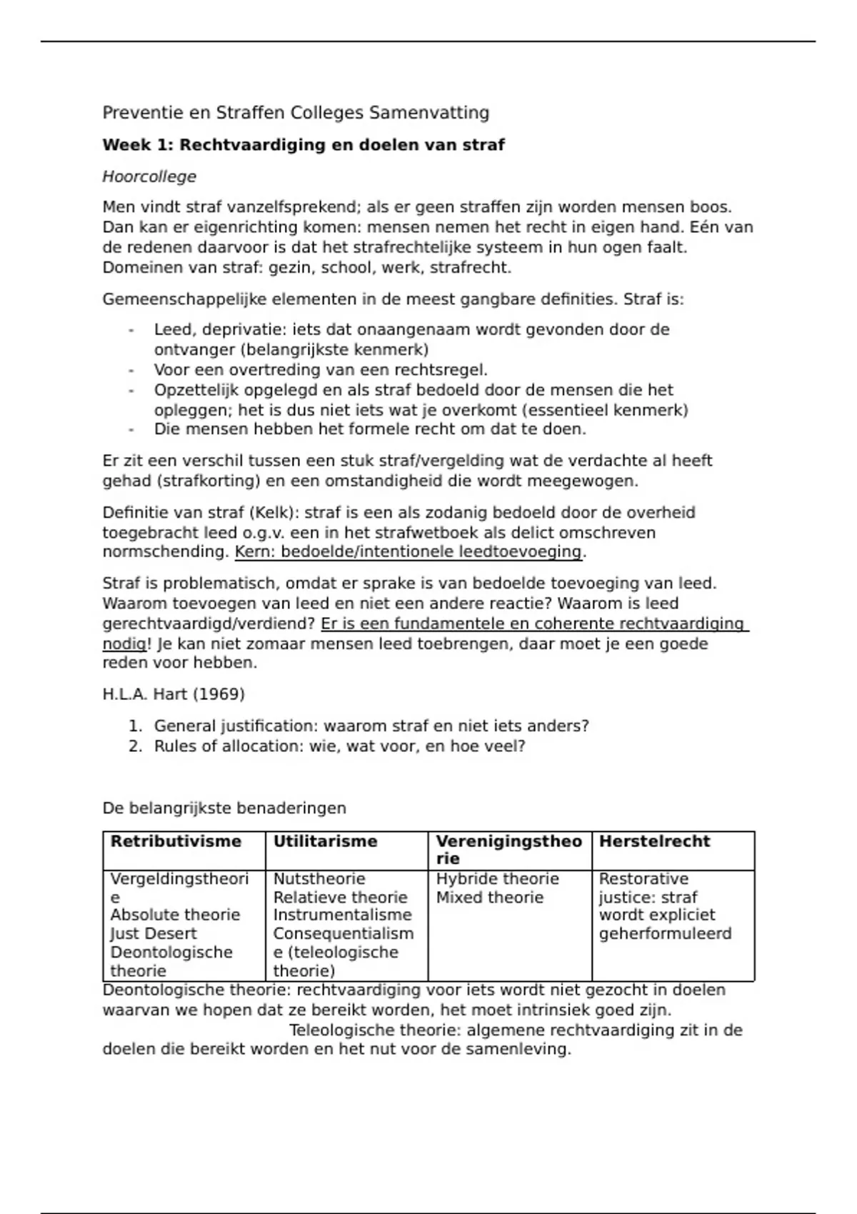 Samenvatting van alle hoorcolleges en werkgroepen van Preventie en Straffen.