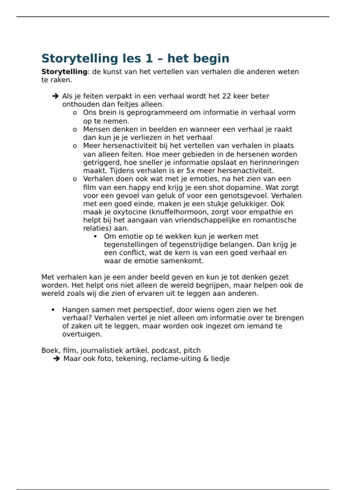 o Ons brein is geprogrammeerd om informatie in verhaal vorm