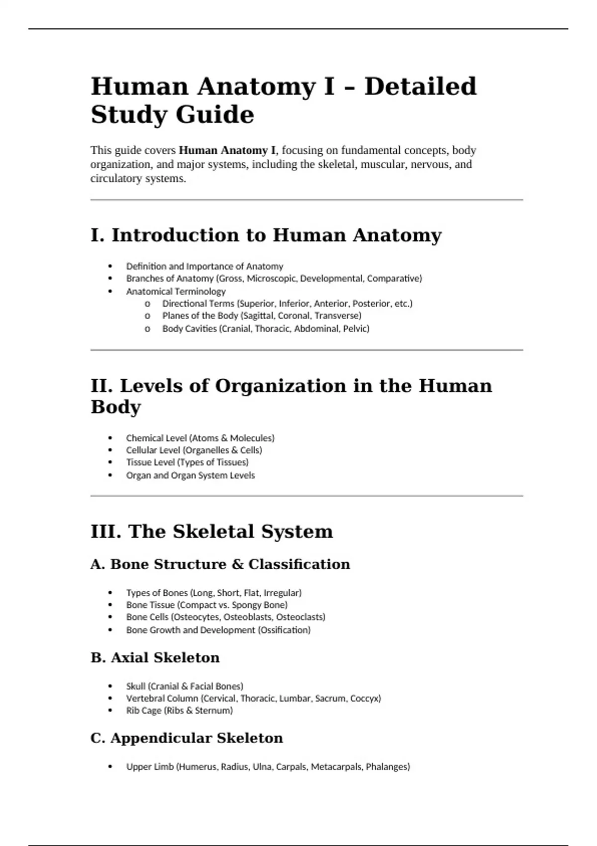 Summary Human Anatomy I – Detailed Study Guide