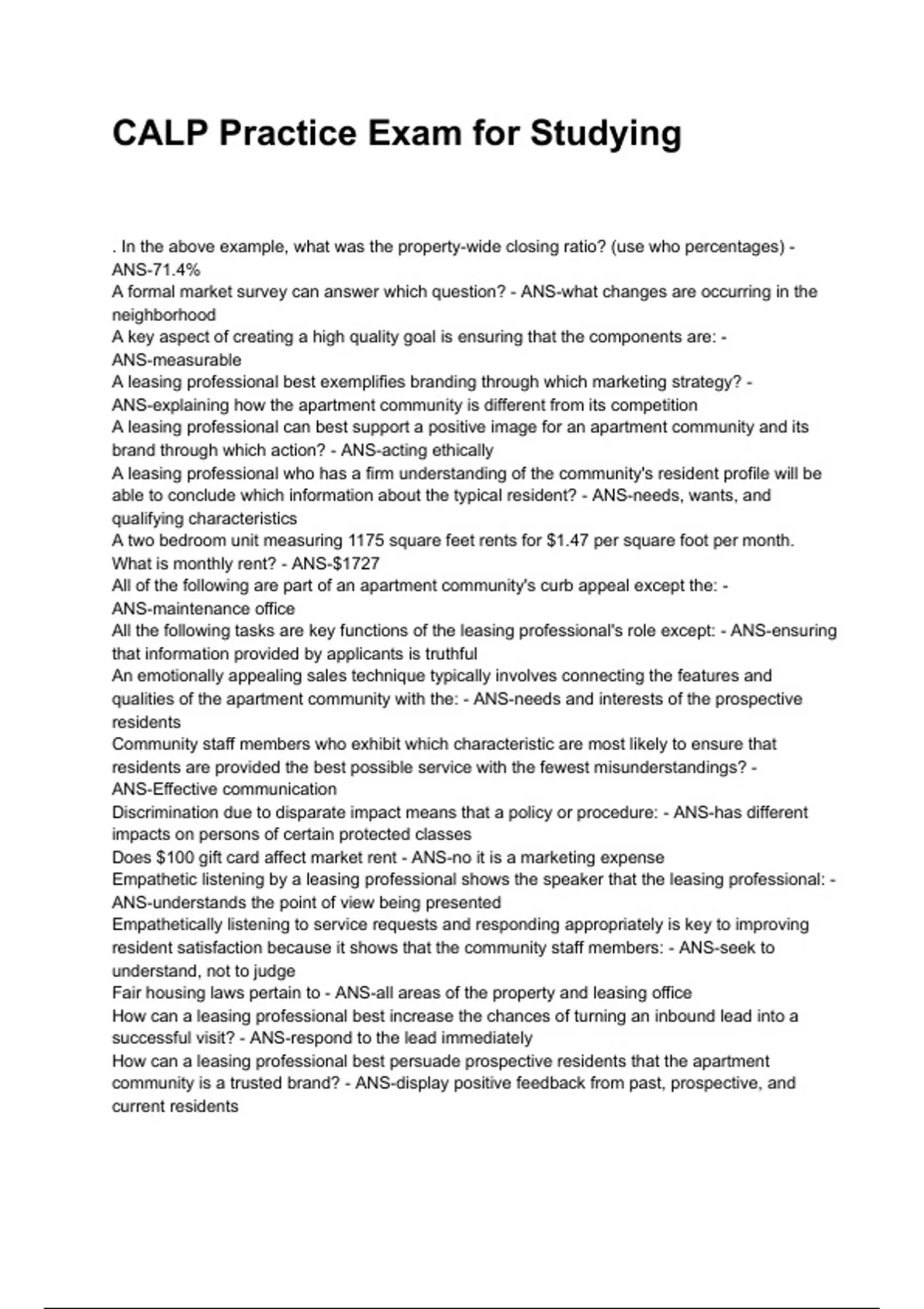 All the following tasks are key functions of the leasing professional's role except: - ANS-ensuring