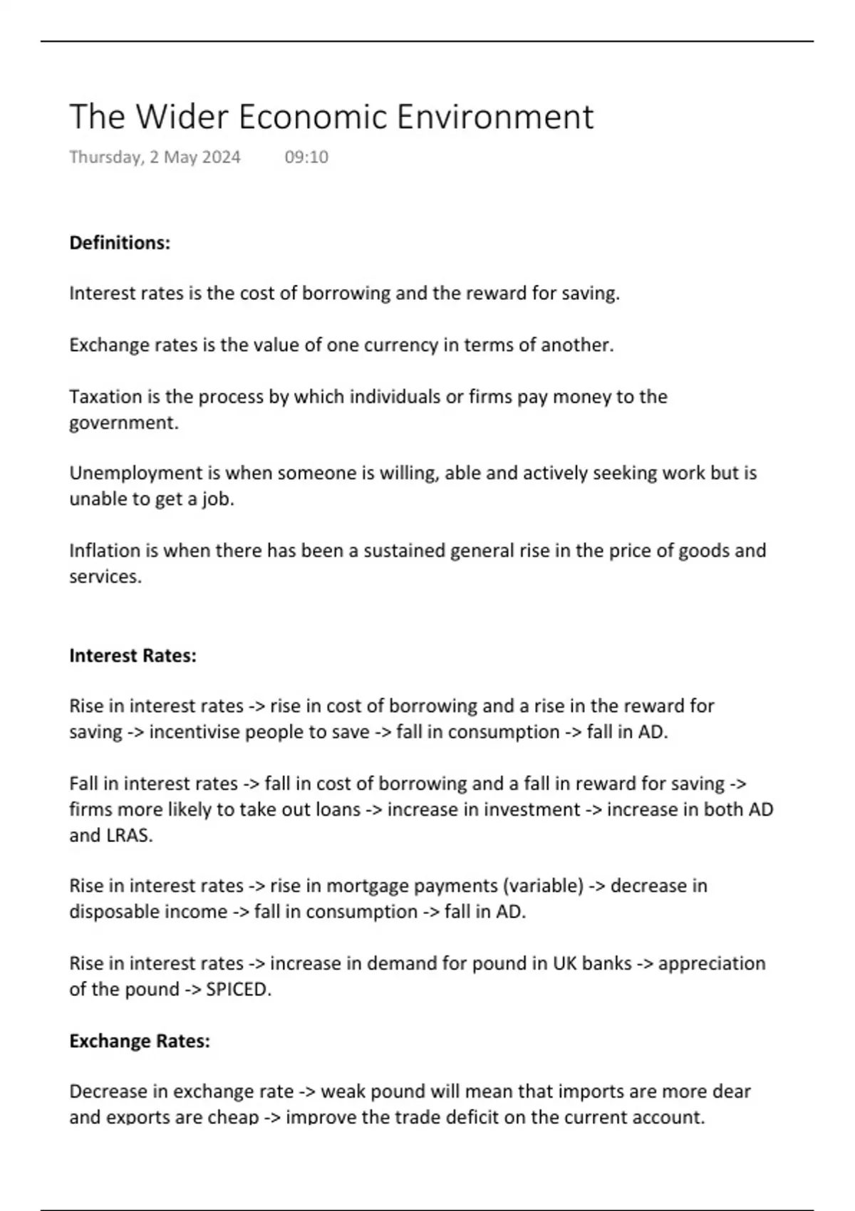 Fall in interest rates -> fall in cost of borrowing and a fall in reward for saving ->
