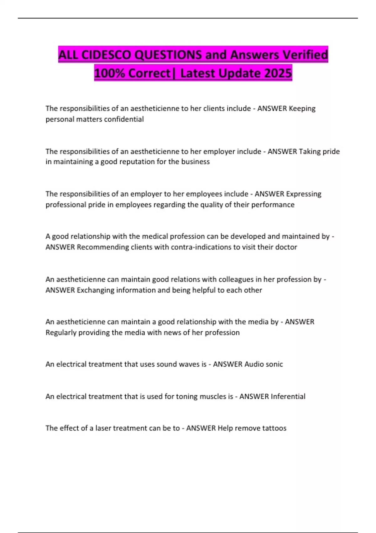 The responsibilities of an aestheticienne to her clients include - ANSWER Keeping